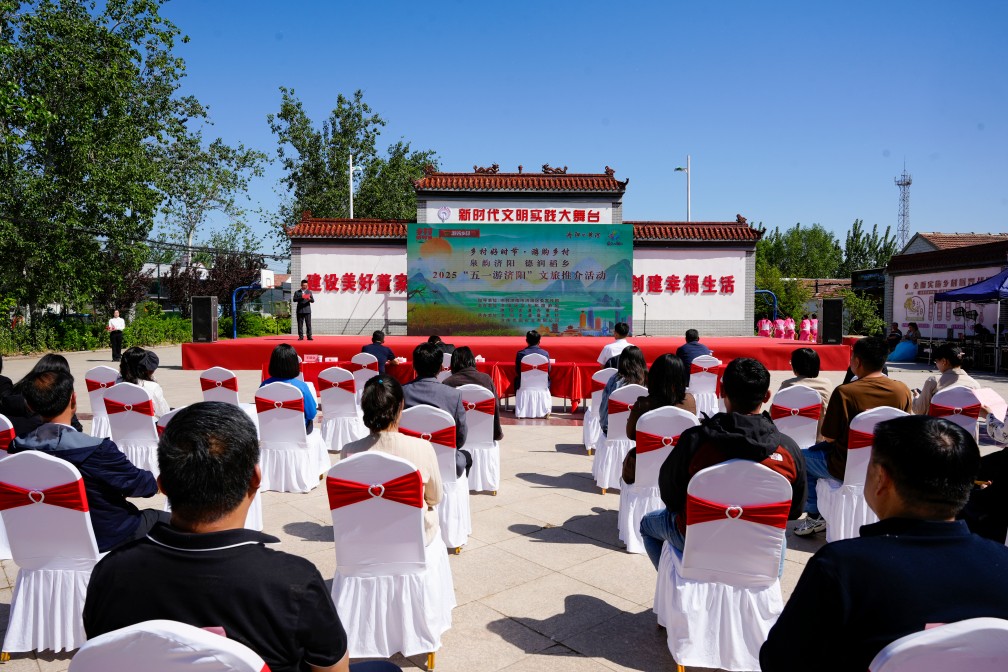 鄧部長在活動中發(fā)表致辭。他講到,濟陽,一座非遺活態(tài)傳承的“文化寶庫”。黃河奔涌千年,孕育了濟陽獨特的人文基因。這里有起源于龍山文化的黑陶工藝,泥火交融間淬煉出“黑如漆、亮如鏡”的千年技藝;有列入國家非遺的鼓子秧歌,田間地頭的質(zhì)樸舞步,跳出了黃河兒女的豪邁氣魄;更有鉤繡、柳編等非遺手藝,一針一線、一編一織,凝結(jié)著濟陽人民的智慧與匠心。他指出,五一正值春末夏初,濟陽大地瓜果飄香、稻田如畫:在“中國西瓜之鄉(xiāng)”仁風(fēng),采摘“富硒西瓜”,品味清甜;在垛石番茄園,體驗“柿”界奇妙,感受豐收喜悅;漫步稻田研學(xué)基地,盡收“稻花香里說豐年”的田園意境……更有非遺手造市集、黃河美食盛宴、民俗文化展演等等,可在沉浸式體驗中觸摸黃河文化脈絡(luò),共享“詩與遠方”。他表示,五一期間,將推出系列惠民政策,讓游客感受濟陽人的熱情與真誠。