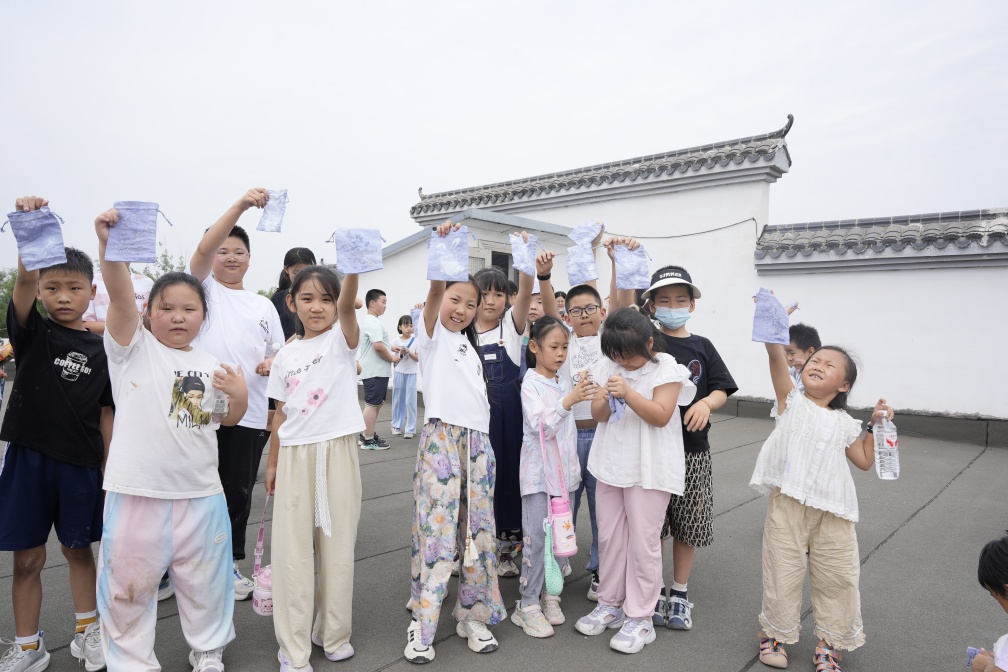扎染工坊內(nèi),孩子們化身為小小的藝術(shù)家。他們用手中的染料和布料,大膽地?fù)]灑著自己的創(chuàng)意,將原本素白的布料染成藍(lán)白相間的圖案,仿佛將天空與大海的美麗濃縮其中。每一塊布料都承載著孩子們的奇思妙想,展示著他們對色彩與美的獨(dú)特理解。