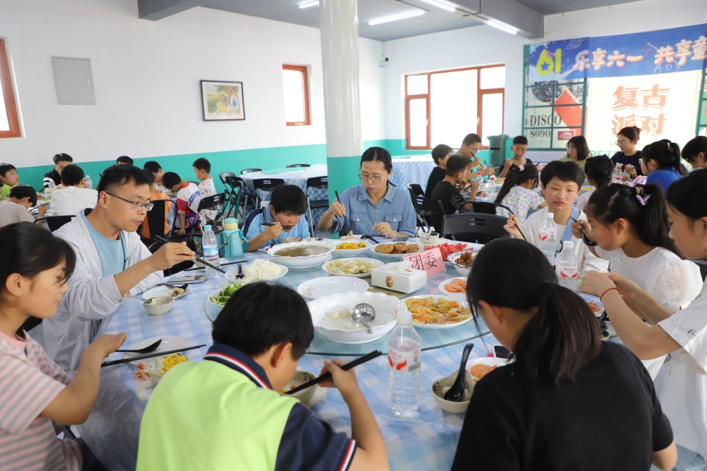 午餐時光,餐廳里彌漫著美食的香氣和歡聲笑語。易豐居的特色農(nóng)家菜,讓孩子們大快朵頤,燉雞鮮香四溢,炒笨雞蛋金黃誘人,每一口都帶著自然的醇香,每一口都飽含家鄉(xiāng)的味道。